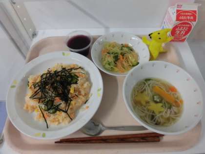 鮭混ぜ寿司・春雨サラダ・七夕そうめん汁・七夕ゼリー・牛乳