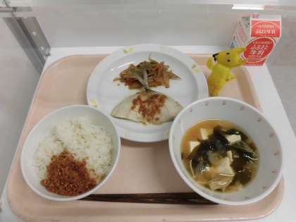 7/13 本日の給食 公開日 2021/07/13 更新日 2021/07/27 給食 【献立】 麦ご飯・おかかでんぶ・鰺のねぎ塩焼き・五目きんぴら・みそ汁・牛乳 今日は、今が旬の鰺のねぎ塩焼きです。 鰺は、味がおいしいからアジと名付けられたといわれる魚 お刺身にしても、焼いても、揚げてもとてもおいしい魚ですよね♪ 食材の産地 閉じる 小松菜・・・東京都(菱山従道さん) 鰺・・・・・ニュージーランド 豚肉・・・・青森県 人参・・・・北海道 えのきたけ ・・新潟県 長ねぎ・じゃが芋 さやいんげん ・・茨城県 生姜・・・・高知県 ごぼう・・・宮崎県 いいね(0) 学校行事