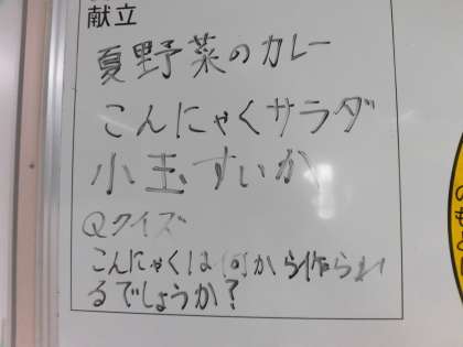 ※給食委員会のクイズに、1年生は首をひねっていました。まさか芋から作られるなんて知らないですもんね!笑