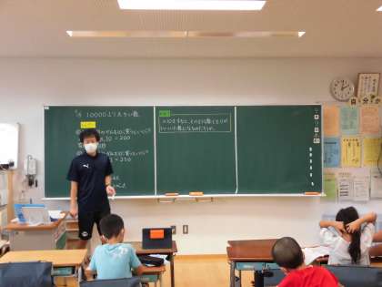 3年生は、算数の学習をしています。数を10倍することで位が1つ大きくなるのかどうかと問いをもち学習が進んでいます。