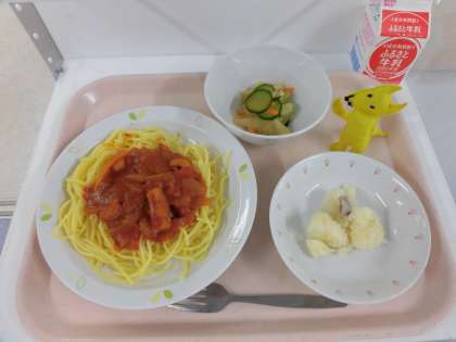 9/14 本日の給食 公開日 2021/09/14 更新日 2021/09/15 給食 【献立】 スパゲティー地中海ソース・ジャーマンポテト・イタリアンドレッシングサラダ・牛乳 食材の産地 閉じる えび・・・・ミャンマー いか・・・・チリ 玉ねぎ・人参 じゃが芋・・北海道 にんにく・・青森県 きゅうり・・岩手県 セロリ・・・長野県 キャベツ・・群馬県 いいね(0) 学校行事