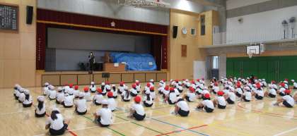 第1回目の運動会練習は、話をしっかり聞くために姿勢を整え、集中する一生懸命な姿が見られました。運動会が楽しみです。