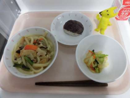 南蛮うどん・野菜のおかかかけ・おはぎ・牛乳