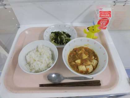 麦入りごはん・麻婆豆腐・じゃこ入りサラダ・牛乳