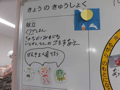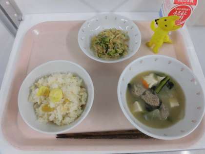 栗ごはん・魚のつみれ汁・糸寒天のごま酢和え・牛乳