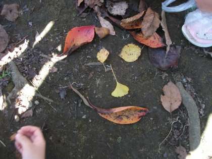 どんぐりや色づいた葉を拾ったり、短なわやドッジビーを使って遊んだりして楽しみました。