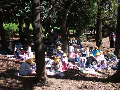1年生は晴天の中、世田谷公園へ遠足に行きました。