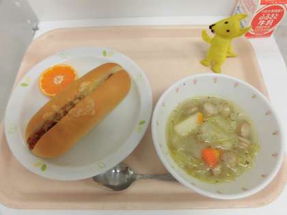 10/21 本日の給食 公開日 2021/10/21 更新日 2021/10/22 給食 【献立】 大豆ミートドッグ・ポトフ・菊花みかん・牛乳 「畑のお肉」大豆と豚挽肉にレバーのミンチをちょい足しして、こくのある大豆ミートを挟み、チーズをのせて焼きました。 フランスの家庭料理「ポトフ」は、野菜のうま味いっぱいの体温まるスープです。 食材の産地 閉じる 豚肉・・・・青森県 人参・玉ねぎ じゃが芋・・北海道 にんにく・・青森県 セロリ・・・長野県 キャベツ・・群馬県 生姜・・・・高知県 みかん・・・広島県 いいね(0) 学校行事