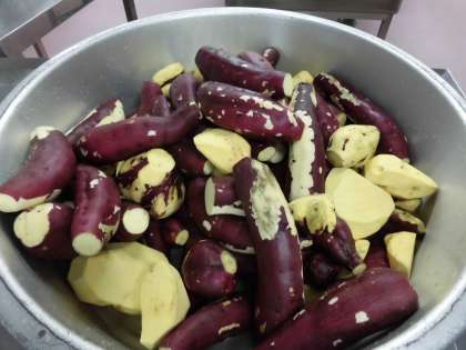 ケチャップ和えのさつま芋は、2年生が、多聞ガーデンで育てたさつま芋を半分使って作りました。