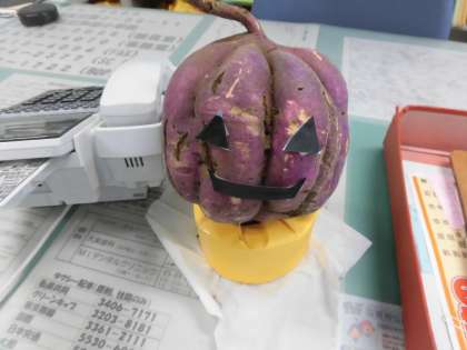 ハロウィーンの時に飾ってあった、カボチャのような形のさつま芋がたくさん穫れたようですが、味はとても甘くておいしいお芋でした。