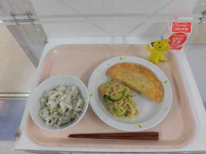 わかめとじゃこのごはん・ジャンボ餃子・春雨サラダ・牛乳