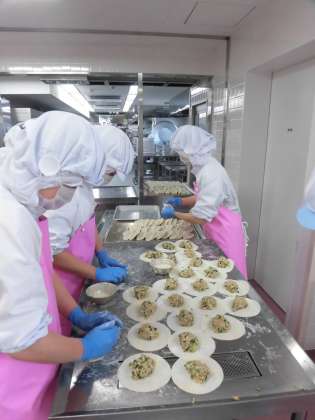 楽しく発表ができますように!と願って、多聞小のみんなに大人気のジャンボ餃子を作ります。