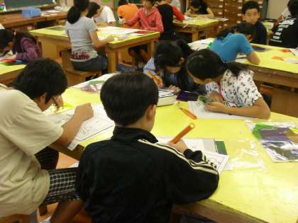 花の写真や図鑑を見てデザインを考え、カッターを使って輪郭を切り取っていきます。
