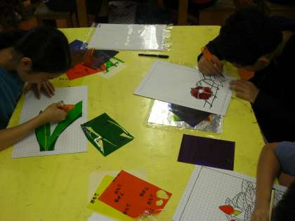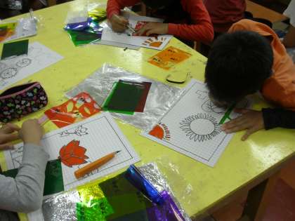 今は、「プッシュステンド」というカラーセロハンを使ったステンドグラスのような作品に取り組んでいます。