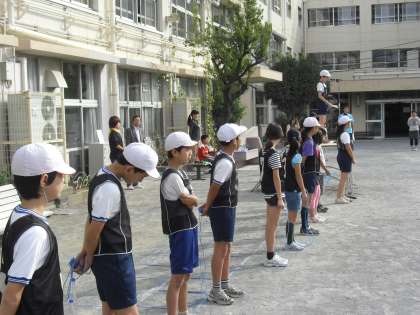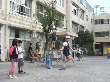 全校朝会で運動委員がなわとび月間についてお知らせし、様々な跳び方を披露しました。この一ヶ月間でどんなことができるようになるか楽しみです。