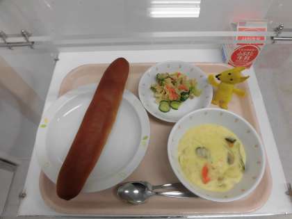 黒砂糖スティックパン・パンプキンシチュー・ツナサラダ・牛乳