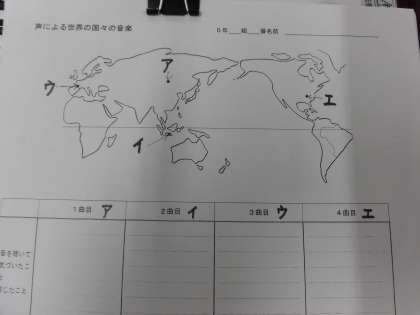 世界の音楽を鑑賞して、感じたことや思ったことをまとめ意見交流を行いました。