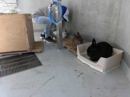 毎日飼育委員会の子どもたちがウサギの世話をしてくれています。ウサギたちも、子どもたちがやってくるととても喜んでいます。