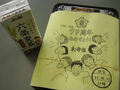 開校記念日を間近に控え、「多聞小79歳おめでとう!いただきます!」と元気よく食べ始めました。