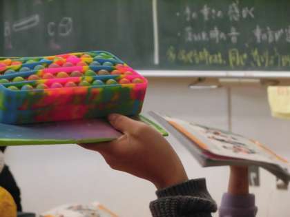 理科の教科書とノート・筆箱どちらが重いと思うかな?みんなで予想をしました。