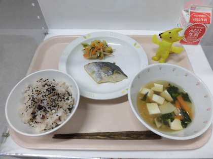 赤飯・鰆の西京焼き・わさび和え・吉野汁・牛乳