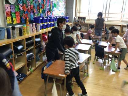 6年生の姿を見て、1年生も自分たちでできることがどんどんと増えています。