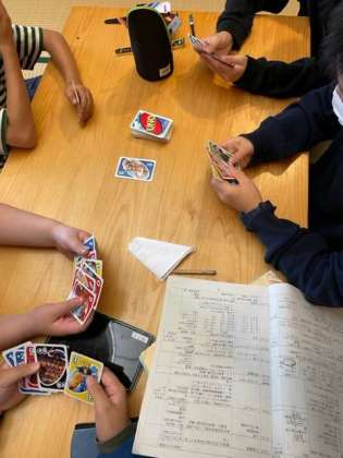 雨でハイキングは中止になりましたが、室内で楽しく遊んでいます!