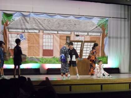 生まれた子供に長い名前をつけた熊さんと町の人たち・・・。有名な落語を精一杯演じ、会場の爆笑を誘いました。