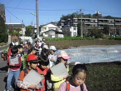 11月16日(水)に世田谷線の松原駅にある、上保農園へ農業体験として大根抜きに行ってきました。初めての経験で、とても苦労していましたが大きな大根を抜くことができました。子どもたちは、想像よりも遙かにこえた大根の大きさにとても喜んでいました。
