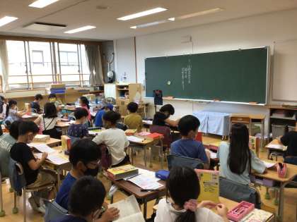 zoomで行われた2学期始業式に引き続き、栄養士さんから皆の成長にはカルシウムが大切だというお話を聞きました。その後、新しく配布された漢字ドリルにさっそく取り組みました。2学期も力を合わせて頑張っていきます。
