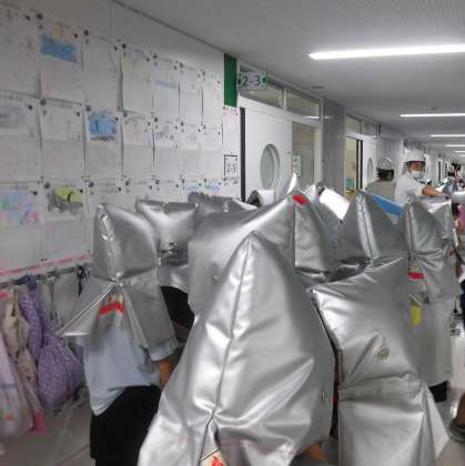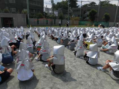 今日は、地震が発生の後に火事対応に切り替える避難訓練をしました。2年生皆、「おかしも」を守り先生の指示をよく聞いて行動しました。防災頭巾の携帯や、口元を覆うハンカチの持ち歩きの必要性を再確認しました。