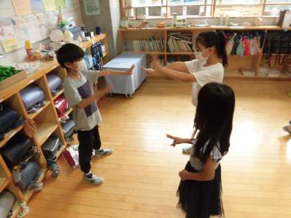 来週に迫った運動会に向けて、毎日練習しています。校庭では学年全員で踊り、教室では踊りを教え合っています。学年目標「わ」を達成できるようにがんばっています。