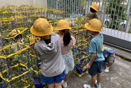 「枯れてきちゃった。」と1学期から育ててきた朝顔を惜しんでいます。