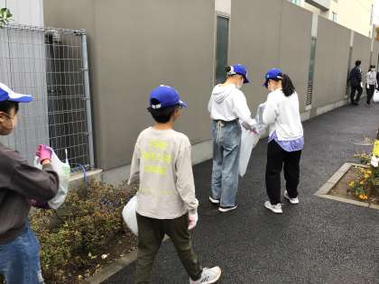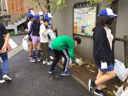 11月30日(水)の始業前に集まり、世田谷区立富士中学校と合同でクリーン作戦を行いました。