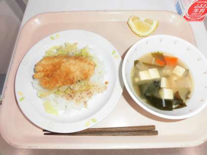 今日は、前回1月のソースカツ丼のときに社会科見学でお出かけしていた4年生の「食べたかった〜!」の声にお応えしてソースカツ丼の再登場でした。今回は鶏肉のカツを作りました。サクサクで、甘辛い特製ソースをかけて、美味しく出来上がりました。キャベツが苦手な子も、カツと一緒に美味しく食べてもらえたらいいなと思います。