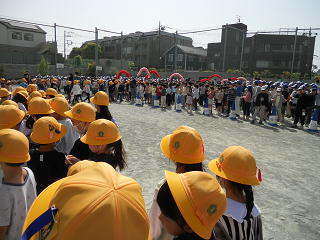 6年生が1年生の手をとって一緒に入場し、全校児童が温かく迎えてくれました。