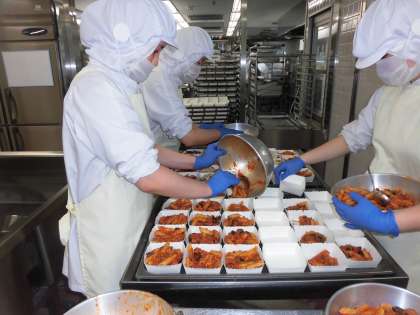 ひき肉や玉ねぎをじっくり炒めてミートソースを作り、炒めたなすと茹でたペンネを合わせてグラタン皿に入れ、チーズとパン粉をふってオーブンで焼いています。