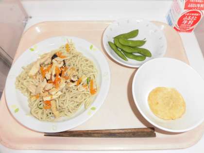 令和5年7月7日(金) <献立> ・冷やし中華 ・じゃがいももち ・枝豆 ・牛乳