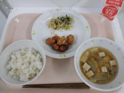 今日、「重陽の節句」にちなみ、菊を使った献立です。