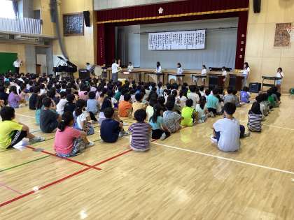 音楽集会 公開日 2023/09/15 更新日 2023/09/15 特別活動 9月15日(金)に、音楽集会がありました。今回は、音楽クラブが「君をのせて」を演奏しました。はじめは演奏を聴き、そのあと音楽クラブの演奏に合わせて全校で歌を歌いました。素敵な演奏で、全校の心が一つになりました。 いいね(0)