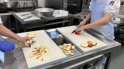りんごは全部で38kg、約150個を手作業でカットしました。
