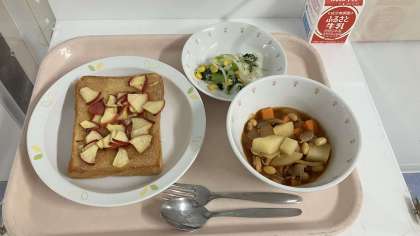 今日は、紅玉という種類のりんごを使ったアップルトーストを作りました。