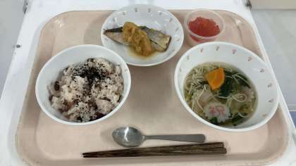 お祝いの日に食べる「赤飯」や出世魚とよばれている「ぶり」を使った献立にしました。