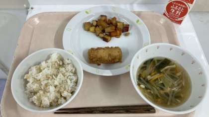給食の献立は、自然によく噛んで食べてもらえるように工夫しました。