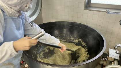 そして、今日のカレーライスも玉ねぎが飴色になるまで炒めたり、小麦粉と油でルウを手作りしたりするなど調理員さんが丁寧に作ってくださっています。