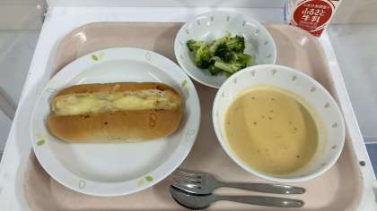 R5/11/27 給食 公開日 2023/11/27 更新日 2023/11/27 給食 令和5年11月27日(月) <献立> ・ツナじゃがコッペ ・白いんげん豆のポタージュ ・グリーンサラダ ・牛乳 いいね(0)