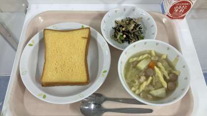 鉄骨サラダは、鉄分の多いひじきと、骨を丈夫にするカルシウムの多いチーズと小松菜を使ったサラダです。