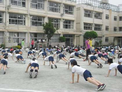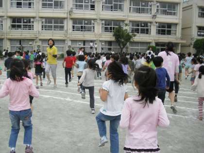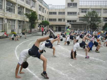 今日のウェンズデースポーツは、運動会で行う準備運動の練習をしました。