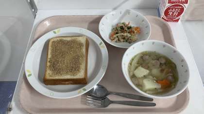 令和6年2月27日(火) <献立> ・セサミトースト ・ポトフ ・ツナと大根のサラダ ・牛乳