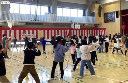 「最後かも!?最高の思い出を作ろう、5年生笑顔フェスティバル」と名付け、ダンスを取り入れた玉入れや、新聞紙をバトンの代わりにした新聞リレーなど、レクリエーション活動を行い学年みんなで盛り上がりました。